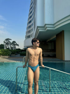 มาต่อกันที่ภาพถัดไป จะเป็นภาพที่เขาอยู่ในสระว่ายน้ำ ใส่บิกินี่สีฟ้า สดใสมากๆ สีชัด เห็นท่อนร่าง เป็นภาพที่ร้อนแรงมาก เร่าร้อนสุดๆ ดึงดูดเหล่าบรรดาสาวๆ เก้ง กวาง