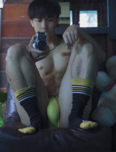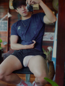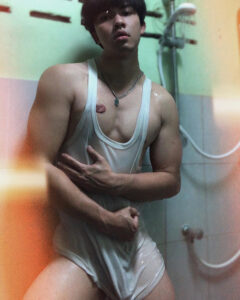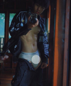 การถ่ายรูป ในห้องน้ำ ของตัวเขาเอง ที่เหมือน ว่าเพิ่ง อาบน้ำ เสร็จใหม่ๆ เลย แรกๆ ก็โฟกัส ที่หน้าตา เพราะหน้าตา ของเขา นั้นดู เหมือนขี้อ้อน เป็นหนุ่ม น่ารัก ยิ้มหวาน